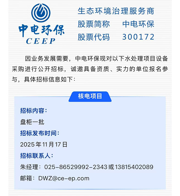 【中電環(huán)保·招標】誠邀參與:水處理項目設備采購公開招標